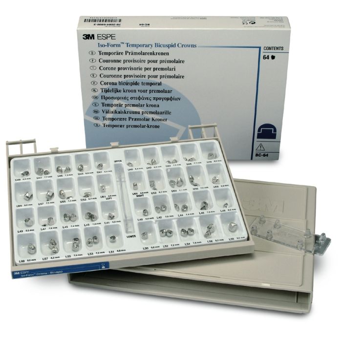 3M™ Iso-Form™ Couronnes provisoires en étain argent pour prémolaires permanentes coffret BC-64
