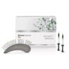 Admira Fusion Flow. Matériau d’obturation ORMOCER nanohybride, fluide et photopolymérisable Le premier matériau d’obturation fluide à base purement céramique au monde. Grâce à la technologie d’ORMOCER : Très faible rétraction de polymérisation (2,75 % en vol.) et un très faible stress de rétraction. Inerte, ainsi la biocompatibilité et la stabilité de teinte sont très élevées. « Flow on demand » – le matériau est seulement fluide sous pression et mouvement. La stabilité du matériau après l’application est très élevée de sorte qu’il ne coule plus de la cavité. Excellente adaptation et mouillage complet des parois de cavités. Une excellente manipulation, un polissage à reflets simple et une dureté de surface élevée garantissent des résultats durables de première qualité. Compatible avec tous les adhésifs conventionnels. Le coffret seringues comprend : 5 seringues de 2 g dans les teintes A1, A2, A3, A3.5, WO, teinter, accessoires.