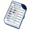 Tenons cylindro-coniques en titane sablé pour les reconstitutions directes des dents postérieures. Caractéristiques : – Rétention mécanique accrue grâce au sablage du titane. – Adaptation anatomique parfaite : 2/3 du tenon cylindrique et 1/3 conique. – Codes de couleurs par diamètre de tenon. – Diamètres blanc, jaune et rouge : 2 différentes longueurs par diamètre. – Compatibilité avec toute la gamme Dentoclic : forets et clavettes. Le module de stérilisation est autoclavable à 135 ° C. Propriétés : – Biocompatibles. – Inaltérables. – Ultra-légers. Le coffret complet de 75 tenons en titane sablé contient : – 6 tenons blancs courts + 6 tenons blancs longs. – 15 tenons jaunes courts + 10 tenons jaunes longs. – 15 tenons rouges courts + 10 tenons rouges longs. – 7 tenons bleus. – 3 tenons verts. – 3 tenons noirs.