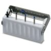 Caractéristiques : – Support ajouré permettant une bonne visibilité des instruments. – Facilite le nettoyage et la stérilisation des instruments. – Bonne stabilité. – Anse autobloquante équipée d’un curseur en silicone pour compter le nombre d’utilisations. – Acier inoxydable et Teflon. – Utilisable en machine à laver, en bac à ultrasons et en stérilisateur. – Dimensions 8 perforations : 7,3 x 1,3 x 4,8 cm.