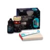 Fuji Ortho LC. Bonne résistance au décollement libération du fluor facile à déposer en fin de traitement. Photopolymérisable. Se polymérise en 20 à 40 s avec une adhérence instantanée – Les fils peuvent être posés dans la même séance. Ciment au verre ionomère renforcé à la résine. Indications : Destiné au collage orthodontique (appareils, brackets en métal ou en céramique, bagues) – Adapté à la technique indirecte. Libération du fluor : prévention des décalcifications et de la carie – Bonne adhérence en milieu humide – Retrait aisé des appareils orthodontiques, pas de fracture de l’émail – Sans décoloration. Le coffret poudre / liquide Fuji Ortho LC GC comprend : 1 flacon de 15 g de poudre. 1 flacon de 6,8 ml de liquide. 1 cuillère doseuse. 1 bloc de mélange.