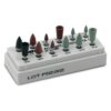 Kit polissage amalgame. Amalgam-reducers noirs pour travailler et pré-polir les amalgames Permettent également de rectifier au-dessus du bord de l’obturation, afin d’obtenir une surface parfaitement lisse à la jonction émail-amalgame. Alphaflex bruns pour polir l’amalgame. Alphaflex verts pour obtenir le brillant souhaité. Le kit pour contre-angle comprend : 2 Amalgam-reducers noirs – 5 Alphaflex bruns – 5 Alphaflex verts. .