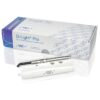 GC D-Light Pro. Lampe LED haute puissance à double Longueur d’onde. Autoclavable Trois programmes : Mode “High Power” avec des cycles de 20 s à une puissance de sortie de 1400mW / cm2 et une double Longueur d’ondes garantit une Mode “Low Power” avec des cycles de 20 s et une puissance réduite de 700 mW/cm2 pour limiter la production de chaleur, par exemple dans les cavités profondes lorsque la préparation est proche de la pulpe. Mode détection avec une irradiation continue de 60 s pour repérer ce qui n’est pas toujours visible à l’oeil nu : de la dentine infectée à la plaque, défaut d’étanchéité, anciennes restaurations composites. Avec un Poids total d’environ 90 g et une pièce à main très fine comme un stylo, D-Light Pro assure un confort optimal pour le patient et le praticien du fait de sa facilité d’accès intra-orale en postérieur comme en antérieur. Deux batteries incluses dans le kit, on peut facilement changer les batteries en quelques secondes chaque fois que cela est nécessaire. Entièrement autoclavable, après le retrait de ses composants électroniques de la pièce à main. Dispositif médical de classe IIa. Marquage CE0086. Fabricant : GC Corporation. Le coffret comprend : 1 D-Light Pro pièce à main et module électronique. 1 embout lumineux 8 mm. 2 packs de batterie. 1 station de charge. 1 chargeur. 1 adaptateurv1 champ dur de protection des yeux. 3 champs de protection souples de protection des yeux.
