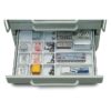 Plateaux intérieurs de tiroirs T1. Plateau porte-instruments 16 compartiments. Hauteur extérieure 2,3 cm. Longueur extérieure 40,5 cm. Nombre de compartiments 12 petits + 4 grands. Profondeur extérieure 30,5 cm. Profondeur intérieure 6,5 cm. Longueur intérieure des petits 6 cm. Longueur intérieure des grands 19 cm.
