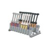 Présentoir vertical “Easy Access”, 20 alvéoles pour seringues, rabattable pour optimiser l’espace.