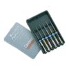 Première génération d’instruments NiTi de préparation canalaire mécanisée technique Crown-Down. Indication : Limes permettant la mise en forme et le nettoyage de la totalité du système canalaire. Vitesse de rotation : Pour utiliser les ProFile à une vitesse stable et constante comprise entre 250 et 350 tr/min, il est possible d’utiliser un moteur indépendant type moteur d’implantologie ou un contre-angle à haut taux de réduction, fixé directement sur l’unit. Pour les équipements électriques, on utilisera un contre-angle réducteur par 100 à 130 et pour les équipements à air, un contre-angle réducteur par 64 à 70. Caractéristiques : – Alliage nickel-titane + rotation continue : flexibilité, efficacité, respect du trajet canalaire. – Conicité constante 4 et 6 : élargissement rapide et efficace de la partie coronaire vers la partie apicale ; obtention d’une bonne conicité finale de la préparation obturation efficace. – Section en U : efficacité ; bonne remontée et élimination des débris pas de bouchons dentinaires ; respect du trajet canalaire ; sécurité, absence d’effet de vissages. – Pointe modifiée : guide évitant toute butée ou fausse route. Cette séquence de base séquence 3, 2, 1, composée seulement de 6 instruments, permettra de traiter la majorité des cas qui peuvent se présenter. Le praticien doit cependant garder à l’esprit que l’anatomie canalaire est variable et que, dans certains cas, il conviendra de modifier légèrement la séquence de base afin de s’adapter à la particularité du cas en présence. La séquence 3, 2, 1 se compose de : – O.S. N °3 Ø 40, conicité 06/3 bagues rouges {pur} {pur} {pur} – O.S. N °2 Ø 30, conicité 06/3 bagues jaunes {puj} {puj} {puj} – ProFile 25, conicité 06 2 bagues rouges {pur} {pur} – ProFile 20, conicité 06 2 bagues jaunes {puj} {puj} – ProFile 25, conicité 04 1 bague rouge {pur} – ProFile 20, conicité 04 1 bague jaune {puj}