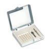 Le coffret TMS T04 Minim contient : 20 tenons Ø 0,525 mm, longueur 2,1 mm + 1 foret coloré Kodex + 1 clé à main.